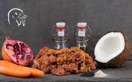 BARF Protect Rind 500g - Komplettmenü für Hunde mit Schwarzkümmel, Kokosflocken und Granatapfel